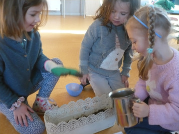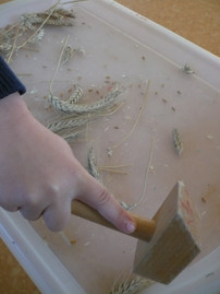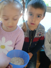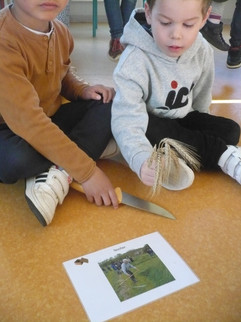 Les PS/MS ont aidé la petite poule rousse à faire du pain. Pour cela, il a fallut trouver des grains de blé, les transformer en farine puis faire du pain.